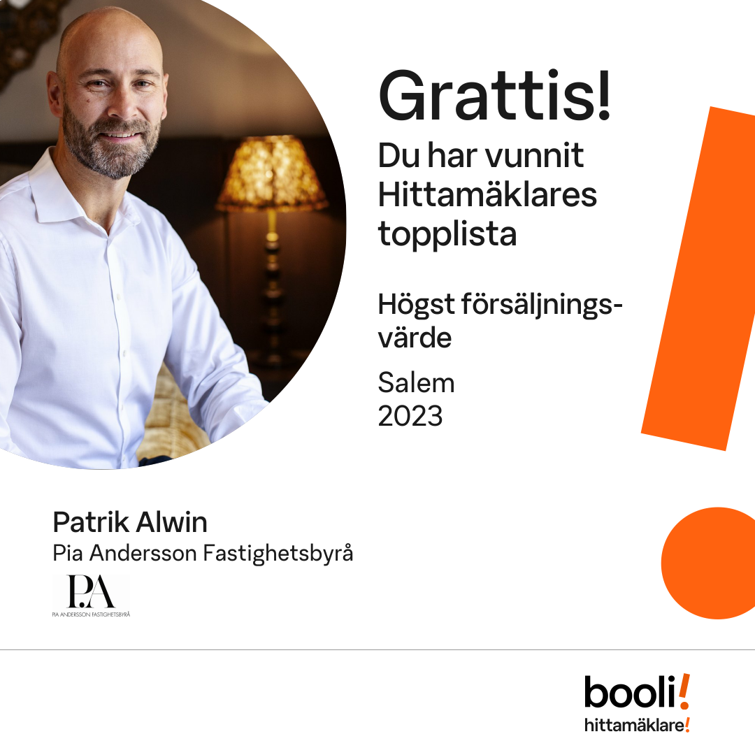 Statistik för publicerade bostäder, försäljningar och omdömen baseras på data från Booli och Hittamäklare. Statistiken för försäljningar avser inrapporterade och verifierade slutpriser från mäklare eller av Booli inhämtade och verifierade slutpriser. Statistiken för publicerade bostäder baseras på information som publicerats på Booli.se. Statistik för omdömen och rekommendationer baseras på omdömen från säljare som lämnats via Booli och Hittamäklare.