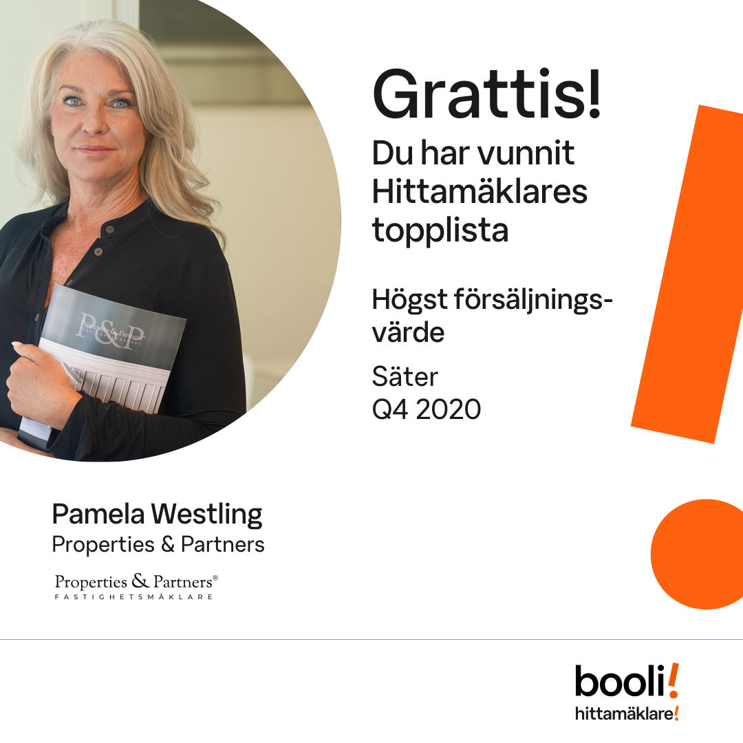 Statistik för publicerade bostäder, försäljningar och omdömen baseras på data från Booli och Hittamäklare. Statistiken för försäljningar avser inrapporterade och verifierade slutpriser från mäklare eller av Booli inhämtade och verifierade slutpriser. Statistiken för publicerade bostäder baseras på information som publicerats på Booli.se. Statistik för omdömen och rekommendationer baseras på omdömen från säljare som lämnats via Booli och Hittamäklare.