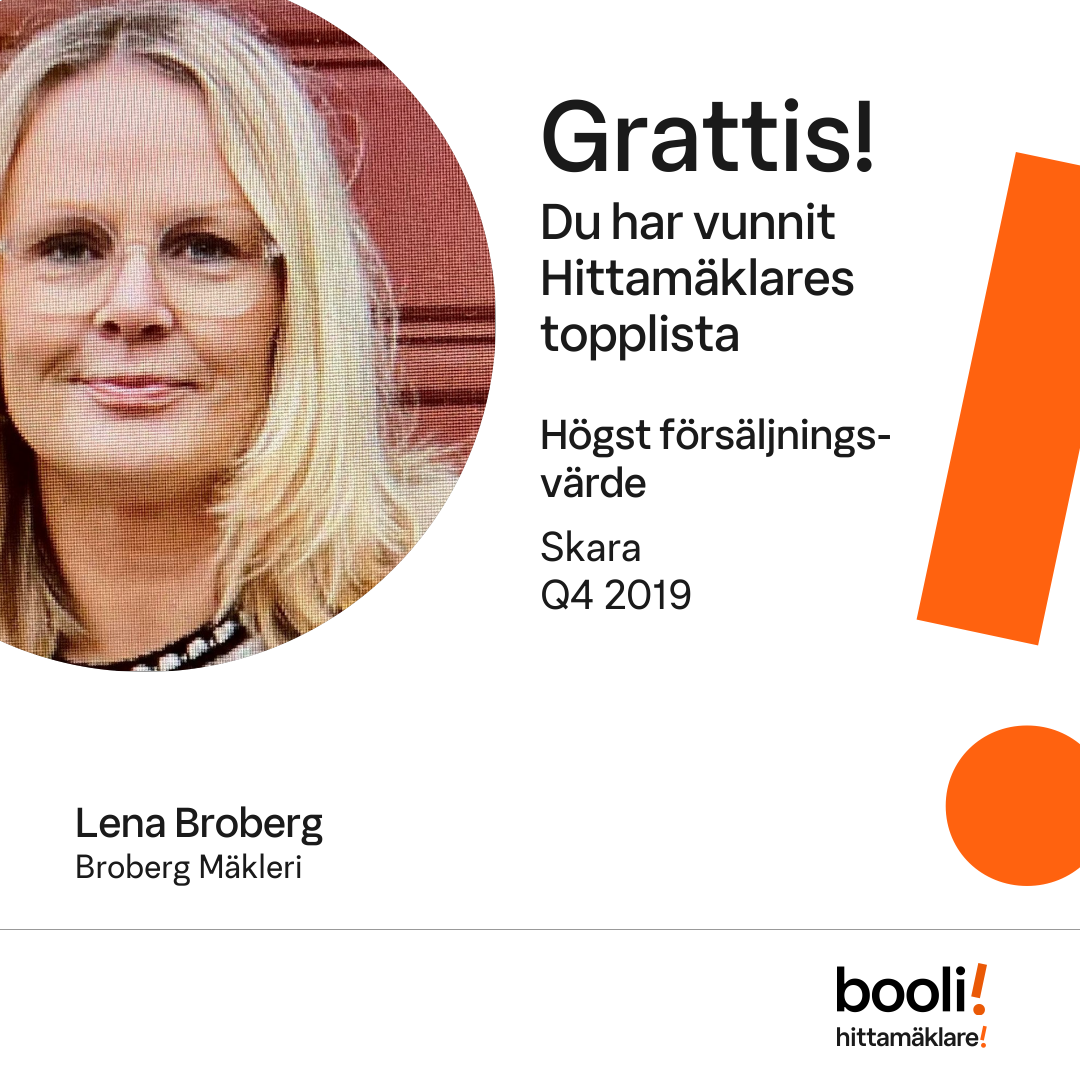 Statistik för publicerade bostäder, försäljningar och omdömen baseras på data från Booli och Hittamäklare. Statistiken för försäljningar avser inrapporterade och verifierade slutpriser från mäklare eller av Booli inhämtade och verifierade slutpriser. Statistiken för publicerade bostäder baseras på information som publicerats på Booli.se. Statistik för omdömen och rekommendationer baseras på omdömen från säljare som lämnats via Booli och Hittamäklare.