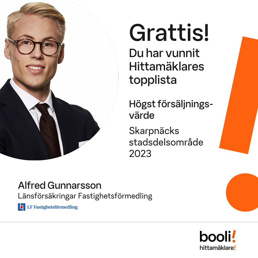 Statistik för publicerade bostäder, försäljningar och omdömen baseras på data från Booli och Hittamäklare. Statistiken för försäljningar avser inrapporterade och verifierade slutpriser från mäklare eller av Booli inhämtade och verifierade slutpriser. Statistiken för publicerade bostäder baseras på information som publicerats på Booli.se. Statistik för omdömen och rekommendationer baseras på omdömen från säljare som lämnats via Booli och Hittamäklare.