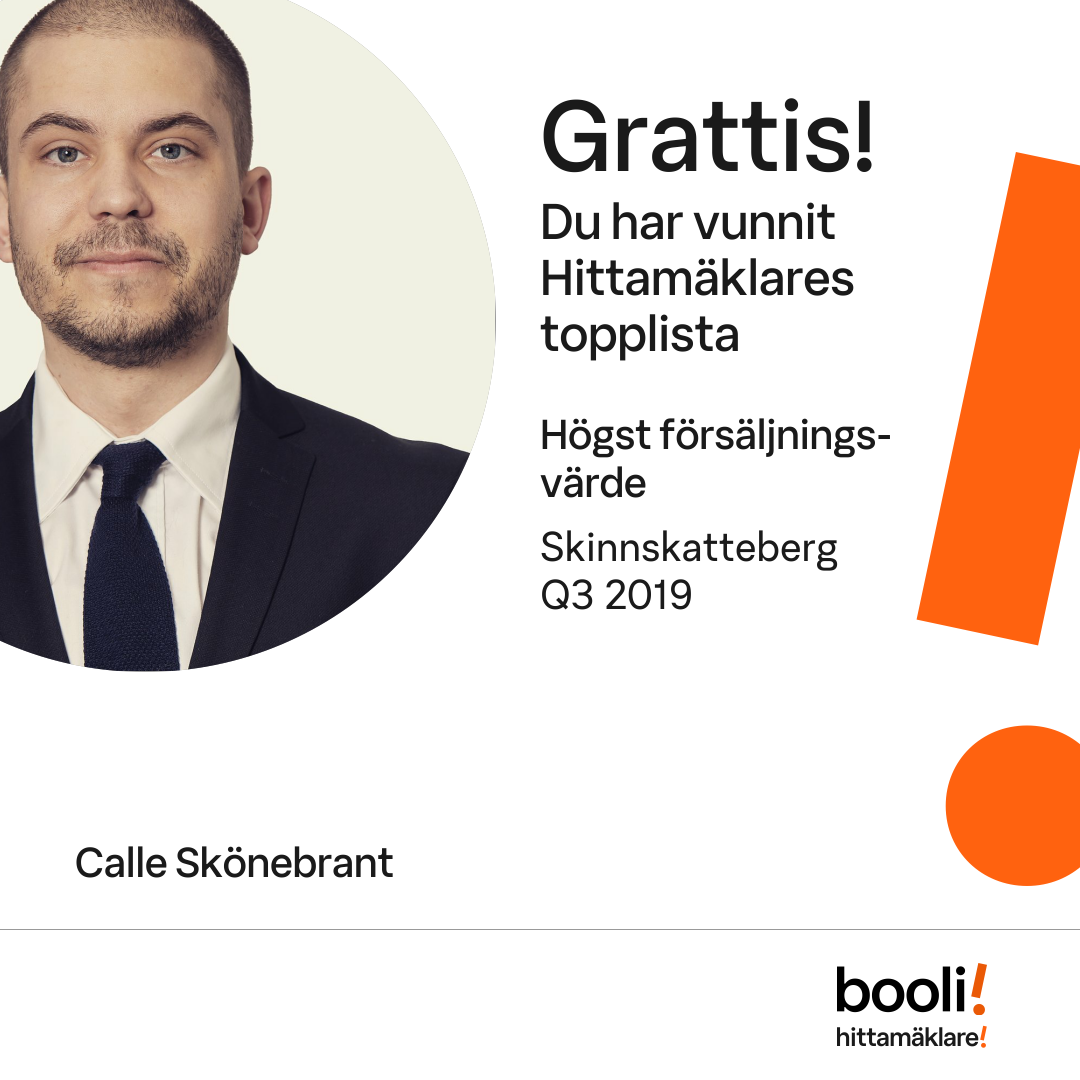 Statistik för publicerade bostäder, försäljningar och omdömen baseras på data från Booli och Hittamäklare. Statistiken för försäljningar avser inrapporterade och verifierade slutpriser från mäklare eller av Booli inhämtade och verifierade slutpriser. Statistiken för publicerade bostäder baseras på information som publicerats på Booli.se. Statistik för omdömen och rekommendationer baseras på omdömen från säljare som lämnats via Booli och Hittamäklare.