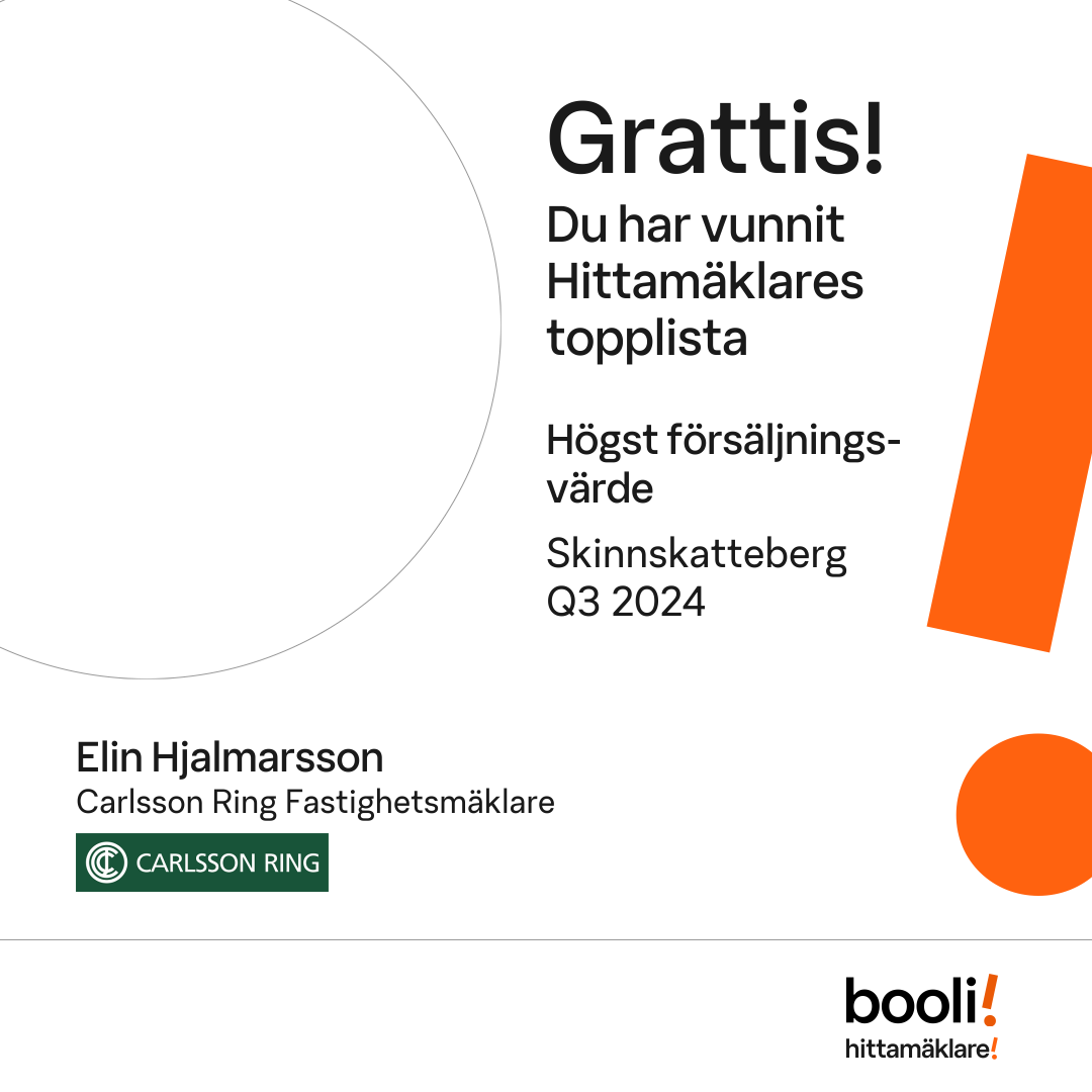 Statistik för publicerade bostäder, försäljningar och omdömen baseras på data från Booli och Hittamäklare. Statistiken för försäljningar avser inrapporterade och verifierade slutpriser från mäklare eller av Booli inhämtade och verifierade slutpriser. Statistiken för publicerade bostäder baseras på information som publicerats på Booli.se. Statistik för omdömen och rekommendationer baseras på omdömen från säljare som lämnats via Booli och Hittamäklare.