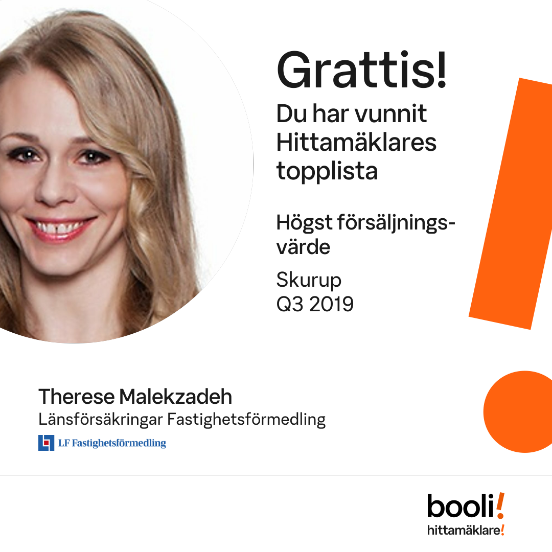 Statistik för publicerade bostäder, försäljningar och omdömen baseras på data från Booli och Hittamäklare. Statistiken för försäljningar avser inrapporterade och verifierade slutpriser från mäklare eller av Booli inhämtade och verifierade slutpriser. Statistiken för publicerade bostäder baseras på information som publicerats på Booli.se. Statistik för omdömen och rekommendationer baseras på omdömen från säljare som lämnats via Booli och Hittamäklare.
