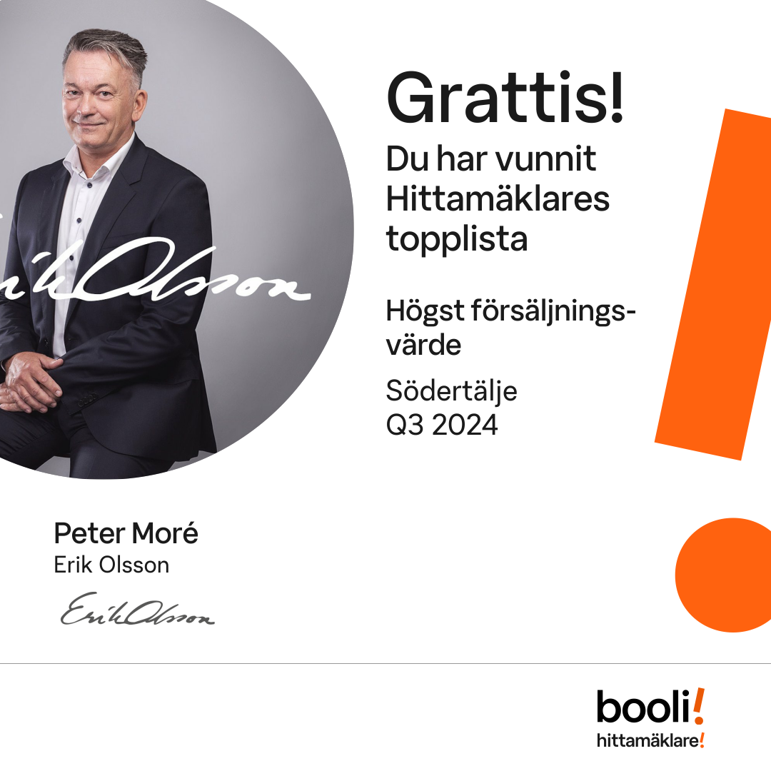 Statistik för publicerade bostäder, försäljningar och omdömen baseras på data från Booli och Hittamäklare. Statistiken för försäljningar avser inrapporterade och verifierade slutpriser från mäklare eller av Booli inhämtade och verifierade slutpriser. Statistiken för publicerade bostäder baseras på information som publicerats på Booli.se. Statistik för omdömen och rekommendationer baseras på omdömen från säljare som lämnats via Booli och Hittamäklare.