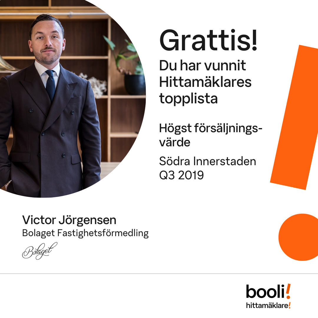 Statistik för publicerade bostäder, försäljningar och omdömen baseras på data från Booli och Hittamäklare. Statistiken för försäljningar avser inrapporterade och verifierade slutpriser från mäklare eller av Booli inhämtade och verifierade slutpriser. Statistiken för publicerade bostäder baseras på information som publicerats på Booli.se. Statistik för omdömen och rekommendationer baseras på omdömen från säljare som lämnats via Booli och Hittamäklare.