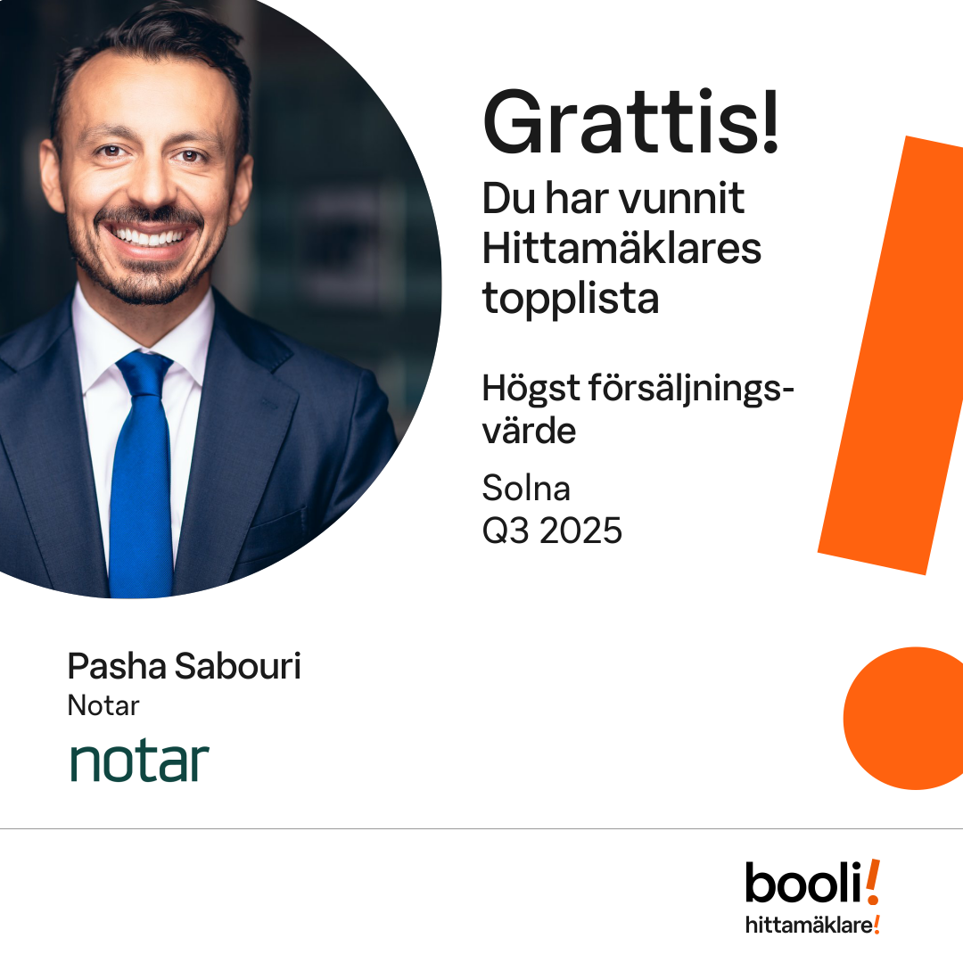 Statistik för publicerade bostäder, försäljningar och omdömen baseras på data från Booli och Hittamäklare. Statistiken för försäljningar avser inrapporterade och verifierade slutpriser från mäklare eller av Booli inhämtade och verifierade slutpriser. Statistiken för publicerade bostäder baseras på information som publicerats på Booli.se. Statistik för omdömen och rekommendationer baseras på omdömen från säljare som lämnats via Booli och Hittamäklare.