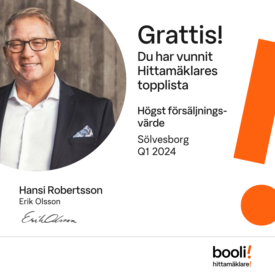 Statistik för publicerade bostäder, försäljningar och omdömen baseras på data från Booli. Statistiken för försäljningar avser inrapporterade och verifierade slutpriser från mäklare eller av Booli inhämtade och verifierade slutpriser. Statistiken för publicerade bostäder baseras på information som publicerats på Booli.se. Statistik för omdömen och rekommendationer baseras på omdömen från säljare som lämnats via Booli.