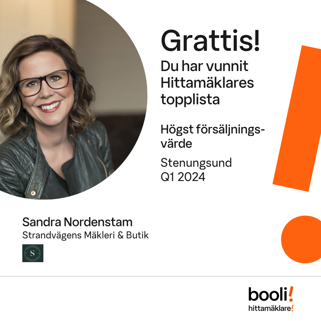 Statistik för publicerade bostäder, försäljningar och omdömen baseras på data från Booli och Hittamäklare. Statistiken för försäljningar avser inrapporterade och verifierade slutpriser från mäklare eller av Booli inhämtade och verifierade slutpriser. Statistiken för publicerade bostäder baseras på information som publicerats på Booli.se. Statistik för omdömen och rekommendationer baseras på omdömen från säljare som lämnats via Booli och Hittamäklare.