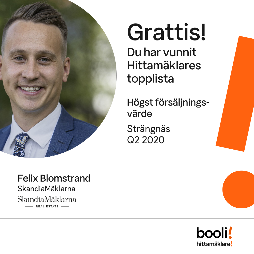 Statistik för publicerade bostäder, försäljningar och omdömen baseras på data från Booli och Hittamäklare. Statistiken för försäljningar avser inrapporterade och verifierade slutpriser från mäklare eller av Booli inhämtade och verifierade slutpriser. Statistiken för publicerade bostäder baseras på information som publicerats på Booli.se. Statistik för omdömen och rekommendationer baseras på omdömen från säljare som lämnats via Booli och Hittamäklare.