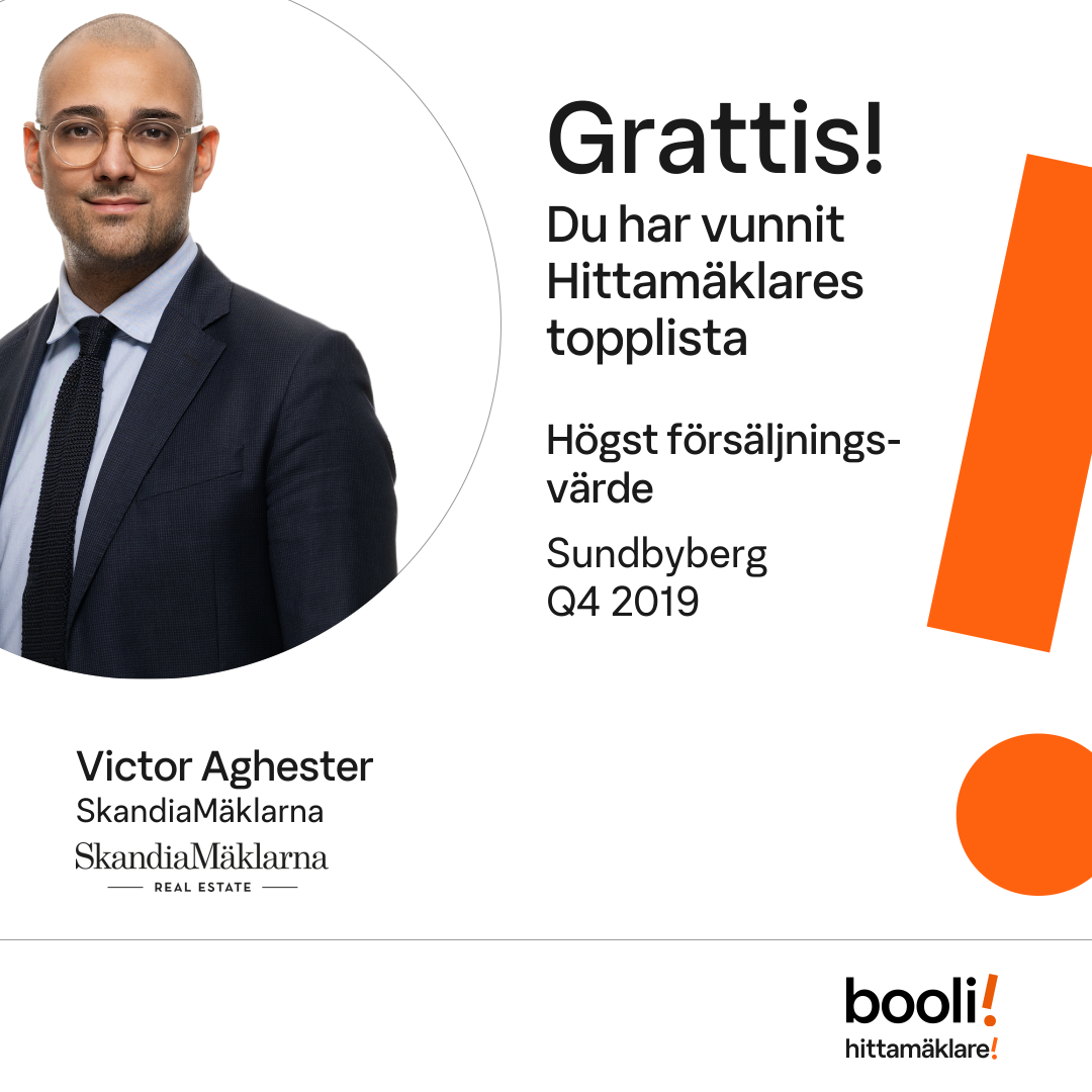 Statistik för publicerade bostäder, försäljningar och omdömen baseras på data från Booli och Hittamäklare. Statistiken för försäljningar avser inrapporterade och verifierade slutpriser från mäklare eller av Booli inhämtade och verifierade slutpriser. Statistiken för publicerade bostäder baseras på information som publicerats på Booli.se. Statistik för omdömen och rekommendationer baseras på omdömen från säljare som lämnats via Booli och Hittamäklare.