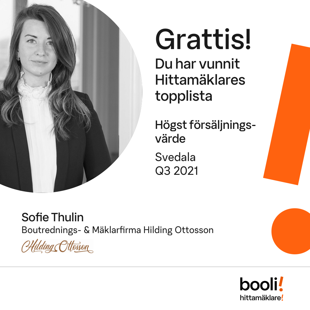 Statistik för publicerade bostäder, försäljningar och omdömen baseras på data från Booli och Hittamäklare. Statistiken för försäljningar avser inrapporterade och verifierade slutpriser från mäklare eller av Booli inhämtade och verifierade slutpriser. Statistiken för publicerade bostäder baseras på information som publicerats på Booli.se. Statistik för omdömen och rekommendationer baseras på omdömen från säljare som lämnats via Booli och Hittamäklare.