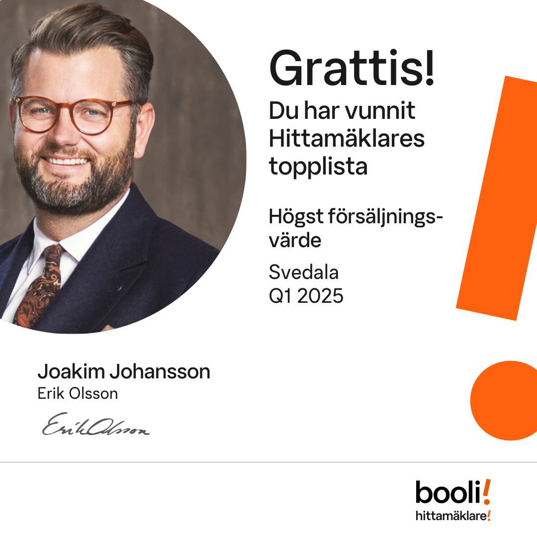 Statistik för publicerade bostäder, försäljningar och omdömen baseras på data från Booli och Hittamäklare. Statistiken för försäljningar avser inrapporterade och verifierade slutpriser från mäklare eller av Booli inhämtade och verifierade slutpriser. Statistiken för publicerade bostäder baseras på information som publicerats på Booli.se. Statistik för omdömen och rekommendationer baseras på omdömen från säljare som lämnats via Booli och Hittamäklare.