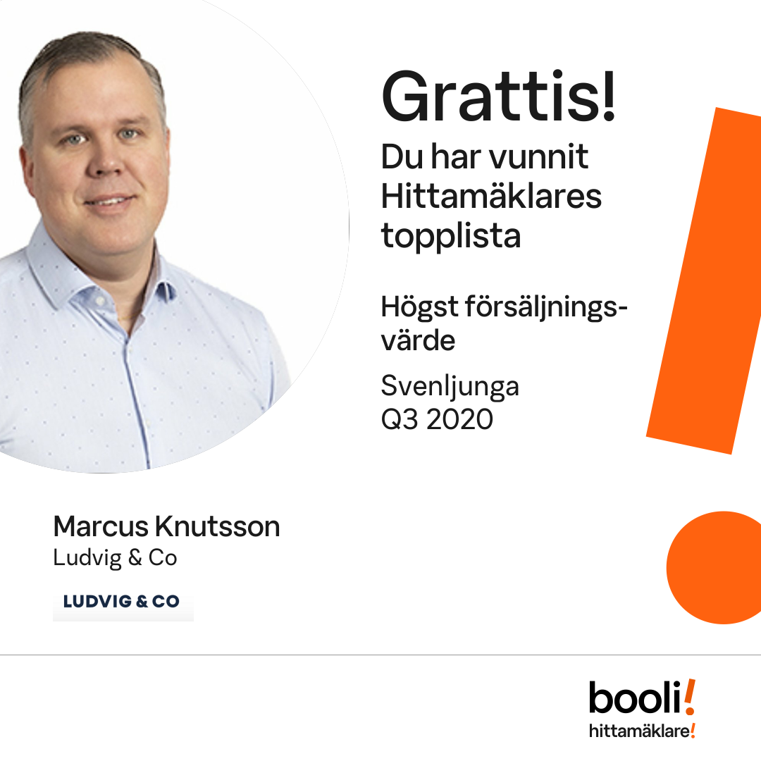 Statistik för publicerade bostäder, försäljningar och omdömen baseras på data från Booli och Hittamäklare. Statistiken för försäljningar avser inrapporterade och verifierade slutpriser från mäklare eller av Booli inhämtade och verifierade slutpriser. Statistiken för publicerade bostäder baseras på information som publicerats på Booli.se. Statistik för omdömen och rekommendationer baseras på omdömen från säljare som lämnats via Booli och Hittamäklare.