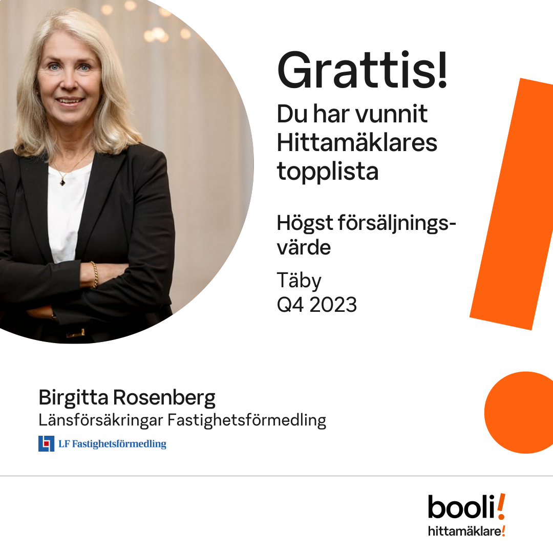 Statistik för publicerade bostäder, försäljningar och omdömen baseras på data från Booli och Hittamäklare. Statistiken för försäljningar avser inrapporterade och verifierade slutpriser från mäklare eller av Booli inhämtade och verifierade slutpriser. Statistiken för publicerade bostäder baseras på information som publicerats på Booli.se. Statistik för omdömen och rekommendationer baseras på omdömen från säljare som lämnats via Booli och Hittamäklare.