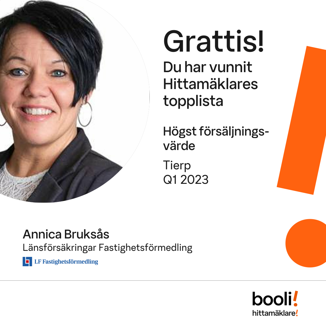 Statistik för publicerade bostäder, försäljningar och omdömen baseras på data från Booli och Hittamäklare. Statistiken för försäljningar avser inrapporterade och verifierade slutpriser från mäklare eller av Booli inhämtade och verifierade slutpriser. Statistiken för publicerade bostäder baseras på information som publicerats på Booli.se. Statistik för omdömen och rekommendationer baseras på omdömen från säljare som lämnats via Booli och Hittamäklare.