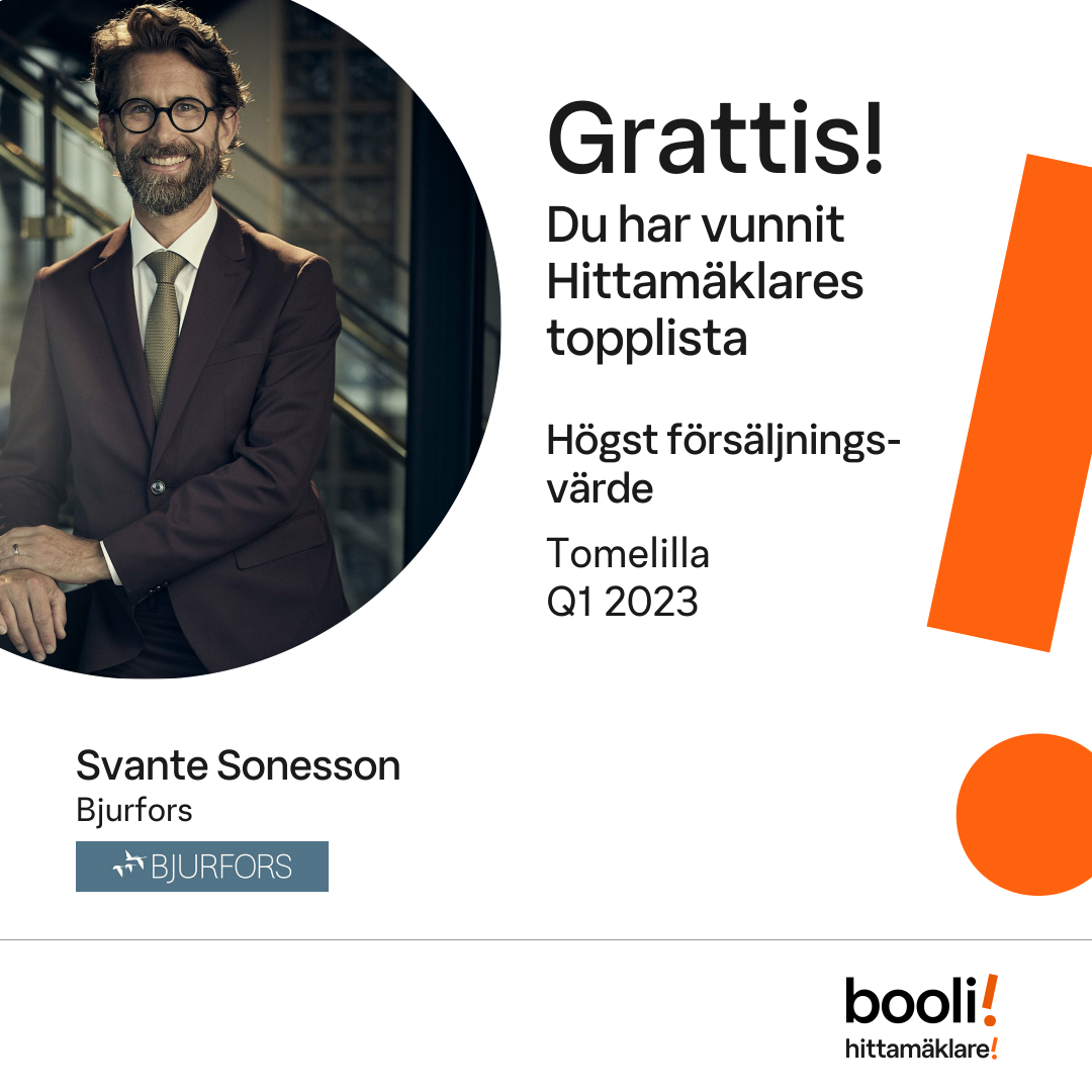 Statistik för publicerade bostäder, försäljningar och omdömen baseras på data från Booli och Hittamäklare. Statistiken för försäljningar avser inrapporterade och verifierade slutpriser från mäklare eller av Booli inhämtade och verifierade slutpriser. Statistiken för publicerade bostäder baseras på information som publicerats på Booli.se. Statistik för omdömen och rekommendationer baseras på omdömen från säljare som lämnats via Booli och Hittamäklare.