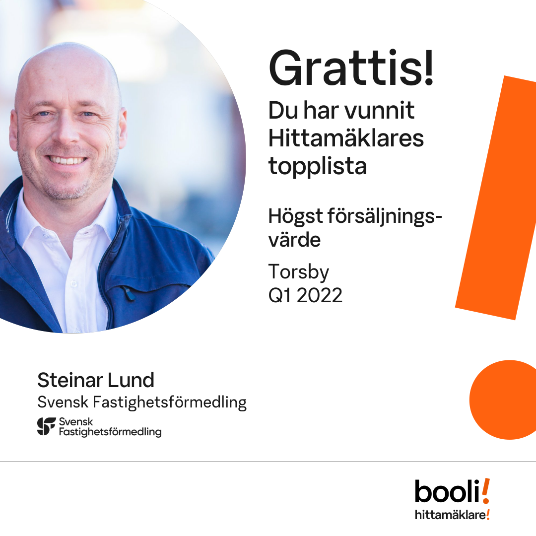 Statistik för publicerade bostäder, försäljningar och omdömen baseras på data från Booli och Hittamäklare. Statistiken för försäljningar avser inrapporterade och verifierade slutpriser från mäklare eller av Booli inhämtade och verifierade slutpriser. Statistiken för publicerade bostäder baseras på information som publicerats på Booli.se. Statistik för omdömen och rekommendationer baseras på omdömen från säljare som lämnats via Booli och Hittamäklare.
