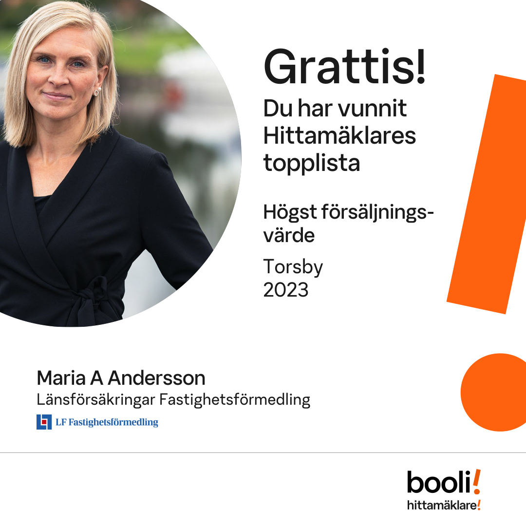 Statistik för publicerade bostäder, försäljningar och omdömen baseras på data från Booli och Hittamäklare. Statistiken för försäljningar avser inrapporterade och verifierade slutpriser från mäklare eller av Booli inhämtade och verifierade slutpriser. Statistiken för publicerade bostäder baseras på information som publicerats på Booli.se. Statistik för omdömen och rekommendationer baseras på omdömen från säljare som lämnats via Booli och Hittamäklare.