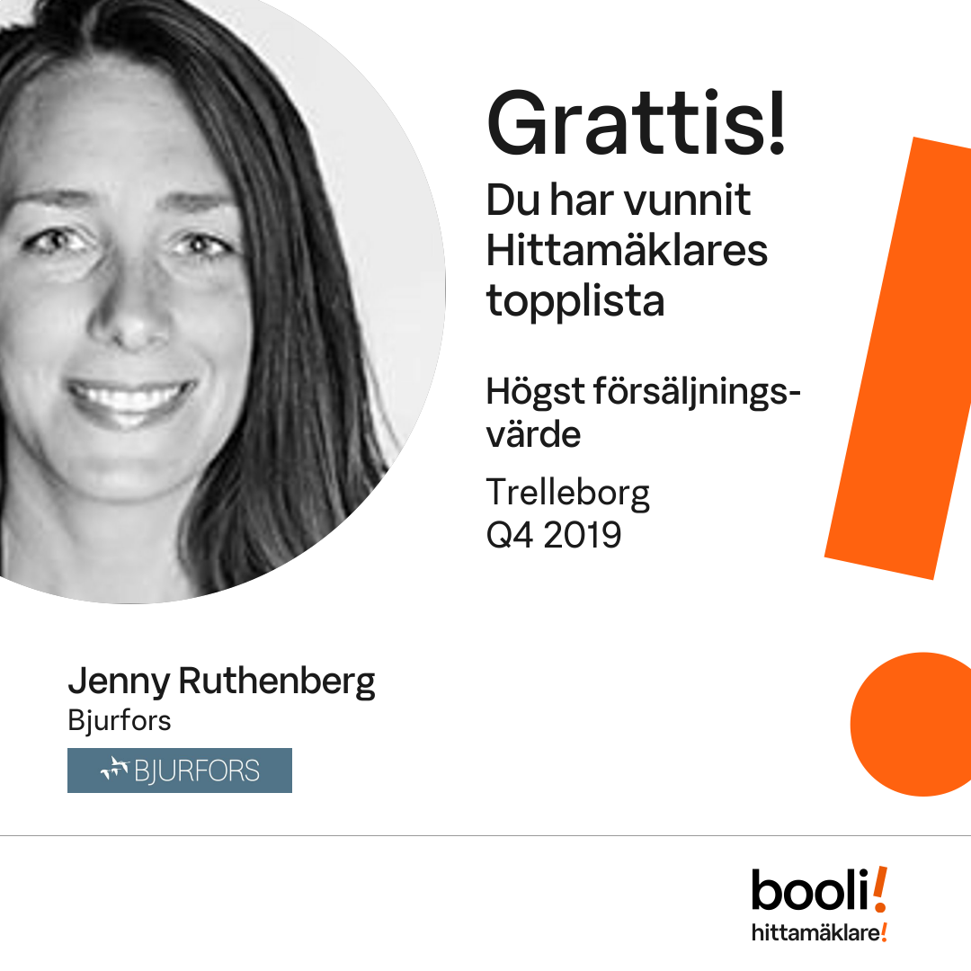 Statistik för publicerade bostäder, försäljningar och omdömen baseras på data från Booli och Hittamäklare. Statistiken för försäljningar avser inrapporterade och verifierade slutpriser från mäklare eller av Booli inhämtade och verifierade slutpriser. Statistiken för publicerade bostäder baseras på information som publicerats på Booli.se. Statistik för omdömen och rekommendationer baseras på omdömen från säljare som lämnats via Booli och Hittamäklare.