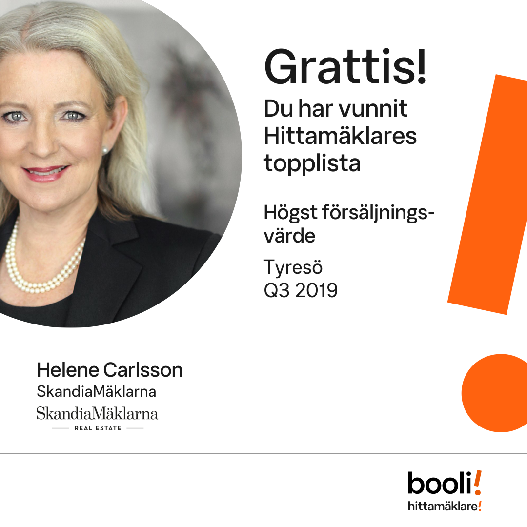 Statistik för publicerade bostäder, försäljningar och omdömen baseras på data från Booli och Hittamäklare. Statistiken för försäljningar avser inrapporterade och verifierade slutpriser från mäklare eller av Booli inhämtade och verifierade slutpriser. Statistiken för publicerade bostäder baseras på information som publicerats på Booli.se. Statistik för omdömen och rekommendationer baseras på omdömen från säljare som lämnats via Booli och Hittamäklare.