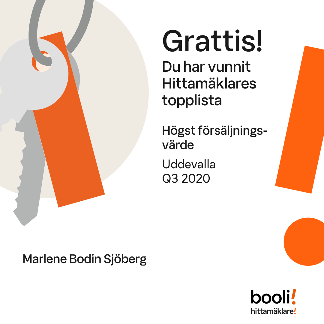 Statistik för publicerade bostäder, försäljningar och omdömen baseras på data från Booli. Statistiken för försäljningar avser inrapporterade och verifierade slutpriser från mäklare eller av Booli inhämtade och verifierade slutpriser. Statistiken för publicerade bostäder baseras på information som publicerats på Booli.se. Statistik för omdömen och rekommendationer baseras på omdömen från säljare som lämnats via Booli.