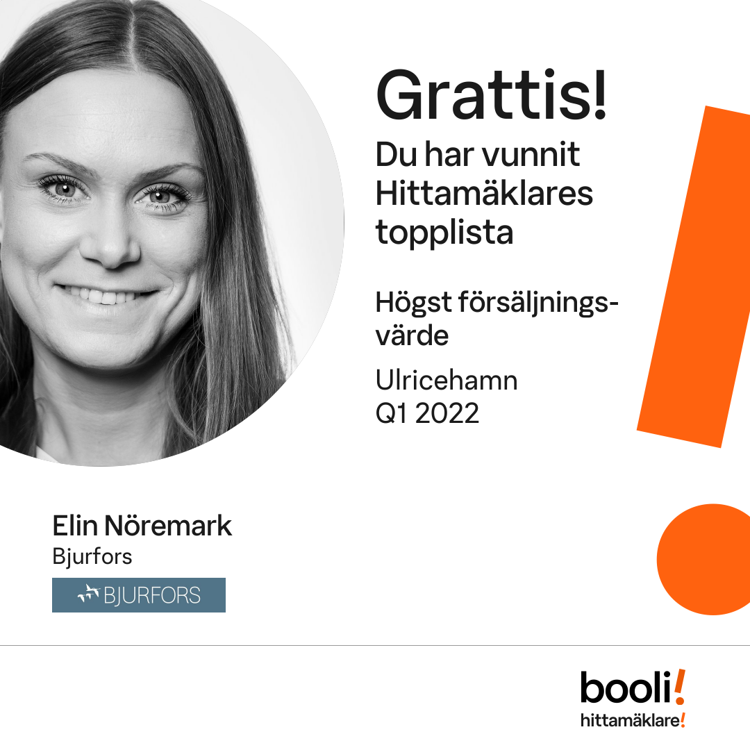 Statistik för publicerade bostäder, försäljningar och omdömen baseras på data från Booli och Hittamäklare. Statistiken för försäljningar avser inrapporterade och verifierade slutpriser från mäklare eller av Booli inhämtade och verifierade slutpriser. Statistiken för publicerade bostäder baseras på information som publicerats på Booli.se. Statistik för omdömen och rekommendationer baseras på omdömen från säljare som lämnats via Booli och Hittamäklare.