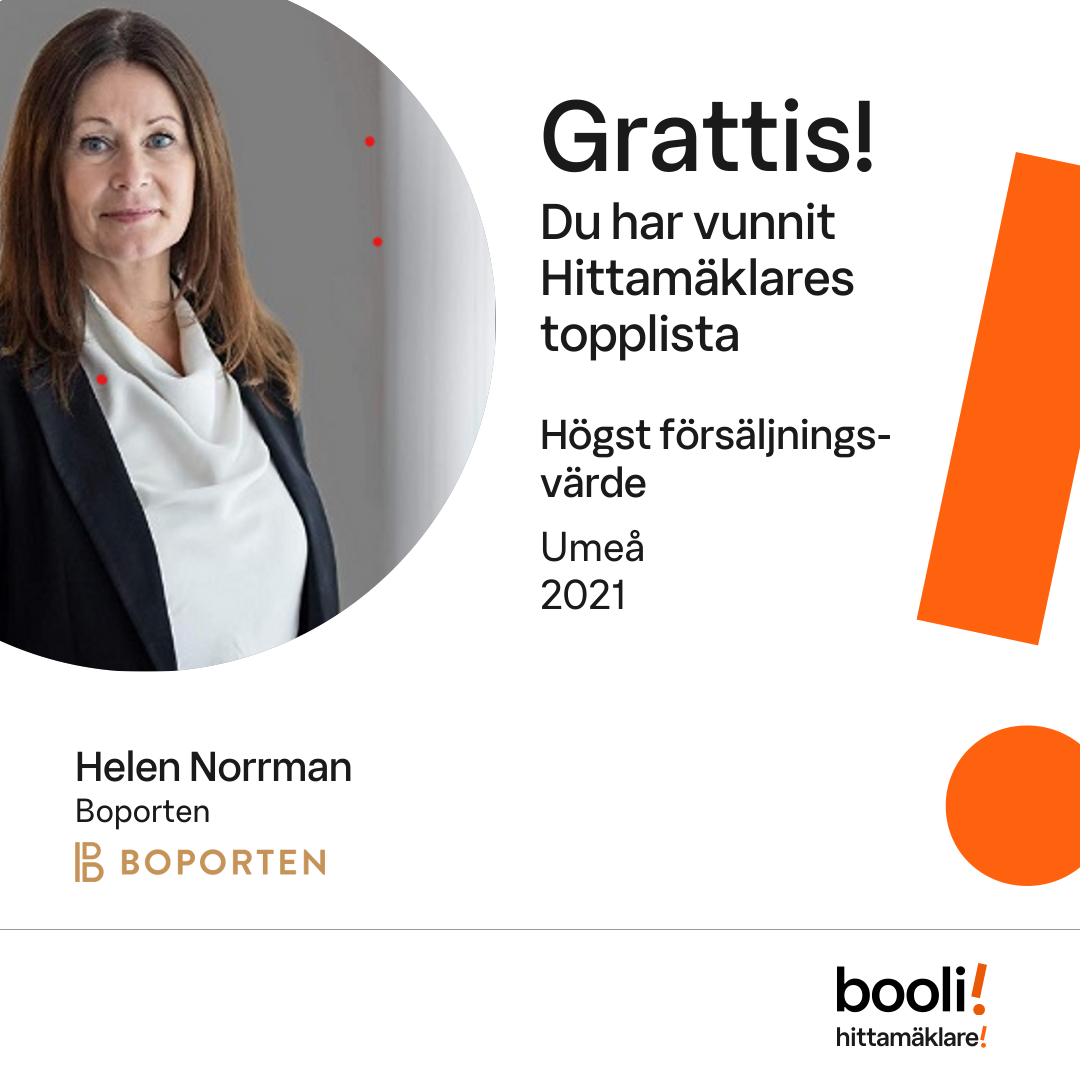 Statistik för publicerade bostäder, försäljningar och omdömen baseras på data från Booli och Hittamäklare. Statistiken för försäljningar avser inrapporterade och verifierade slutpriser från mäklare eller av Booli inhämtade och verifierade slutpriser. Statistiken för publicerade bostäder baseras på information som publicerats på Booli.se. Statistik för omdömen och rekommendationer baseras på omdömen från säljare som lämnats via Booli och Hittamäklare.