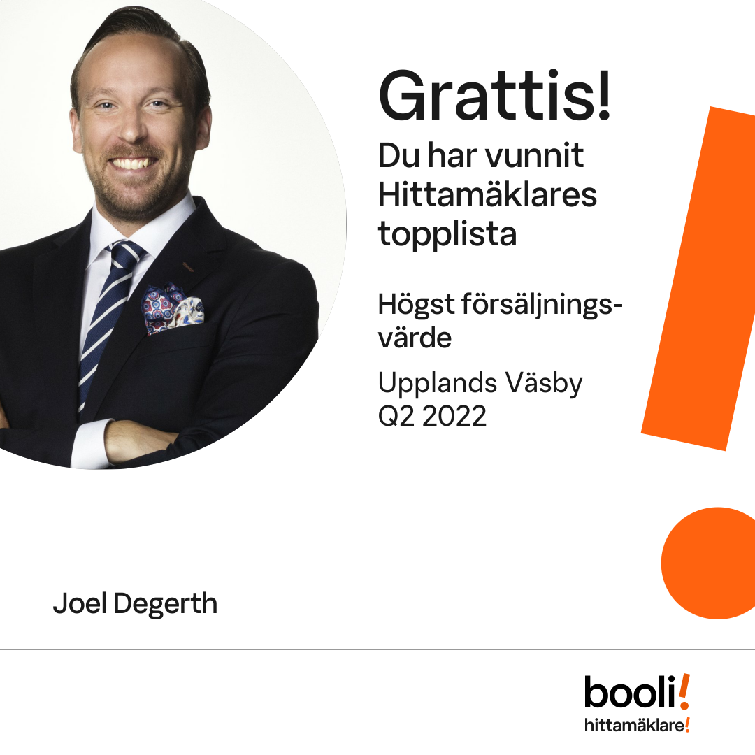 Statistik för publicerade bostäder, försäljningar och omdömen baseras på data från Booli och Hittamäklare. Statistiken för försäljningar avser inrapporterade och verifierade slutpriser från mäklare eller av Booli inhämtade och verifierade slutpriser. Statistiken för publicerade bostäder baseras på information som publicerats på Booli.se. Statistik för omdömen och rekommendationer baseras på omdömen från säljare som lämnats via Booli och Hittamäklare.