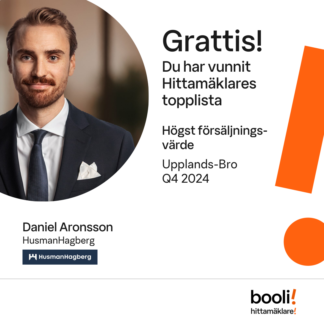 Statistik för publicerade bostäder, försäljningar och omdömen baseras på data från Booli och Hittamäklare. Statistiken för försäljningar avser inrapporterade och verifierade slutpriser från mäklare eller av Booli inhämtade och verifierade slutpriser. Statistiken för publicerade bostäder baseras på information som publicerats på Booli.se. Statistik för omdömen och rekommendationer baseras på omdömen från säljare som lämnats via Booli och Hittamäklare.