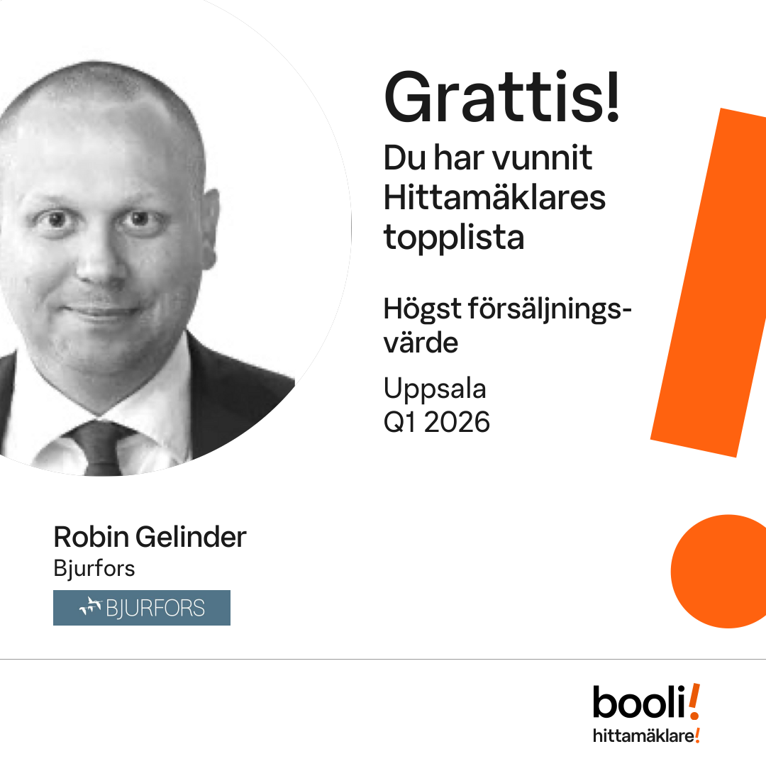 Statistik för publicerade bostäder, försäljningar och omdömen baseras på data från Booli. Statistiken för försäljningar avser inrapporterade och verifierade slutpriser från mäklare eller av Booli inhämtade och verifierade slutpriser. Statistiken för publicerade bostäder baseras på information som publicerats på Booli.se. Statistik för omdömen och rekommendationer baseras på omdömen från säljare som lämnats via Booli.