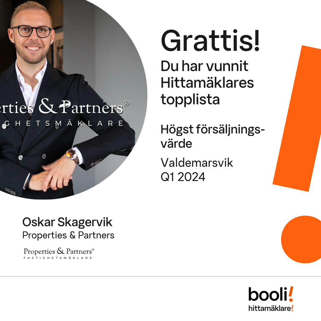 Statistik för publicerade bostäder, försäljningar och omdömen baseras på data från Booli och Hittamäklare. Statistiken för försäljningar avser inrapporterade och verifierade slutpriser från mäklare eller av Booli inhämtade och verifierade slutpriser. Statistiken för publicerade bostäder baseras på information som publicerats på Booli.se. Statistik för omdömen och rekommendationer baseras på omdömen från säljare som lämnats via Booli och Hittamäklare.