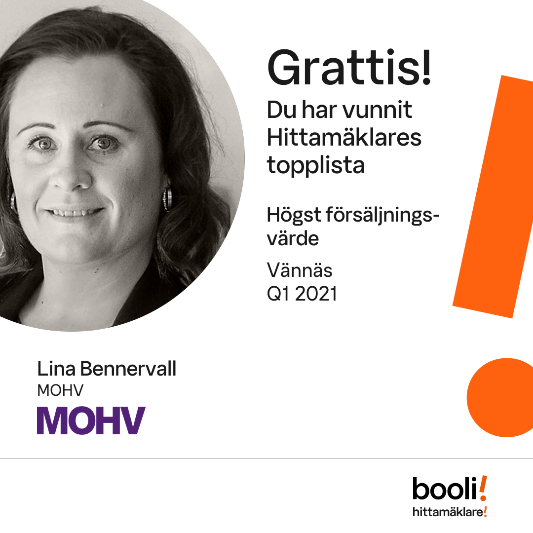 Statistik för publicerade bostäder, försäljningar och omdömen baseras på data från Booli och Hittamäklare. Statistiken för försäljningar avser inrapporterade och verifierade slutpriser från mäklare eller av Booli inhämtade och verifierade slutpriser. Statistiken för publicerade bostäder baseras på information som publicerats på Booli.se. Statistik för omdömen och rekommendationer baseras på omdömen från säljare som lämnats via Booli och Hittamäklare.