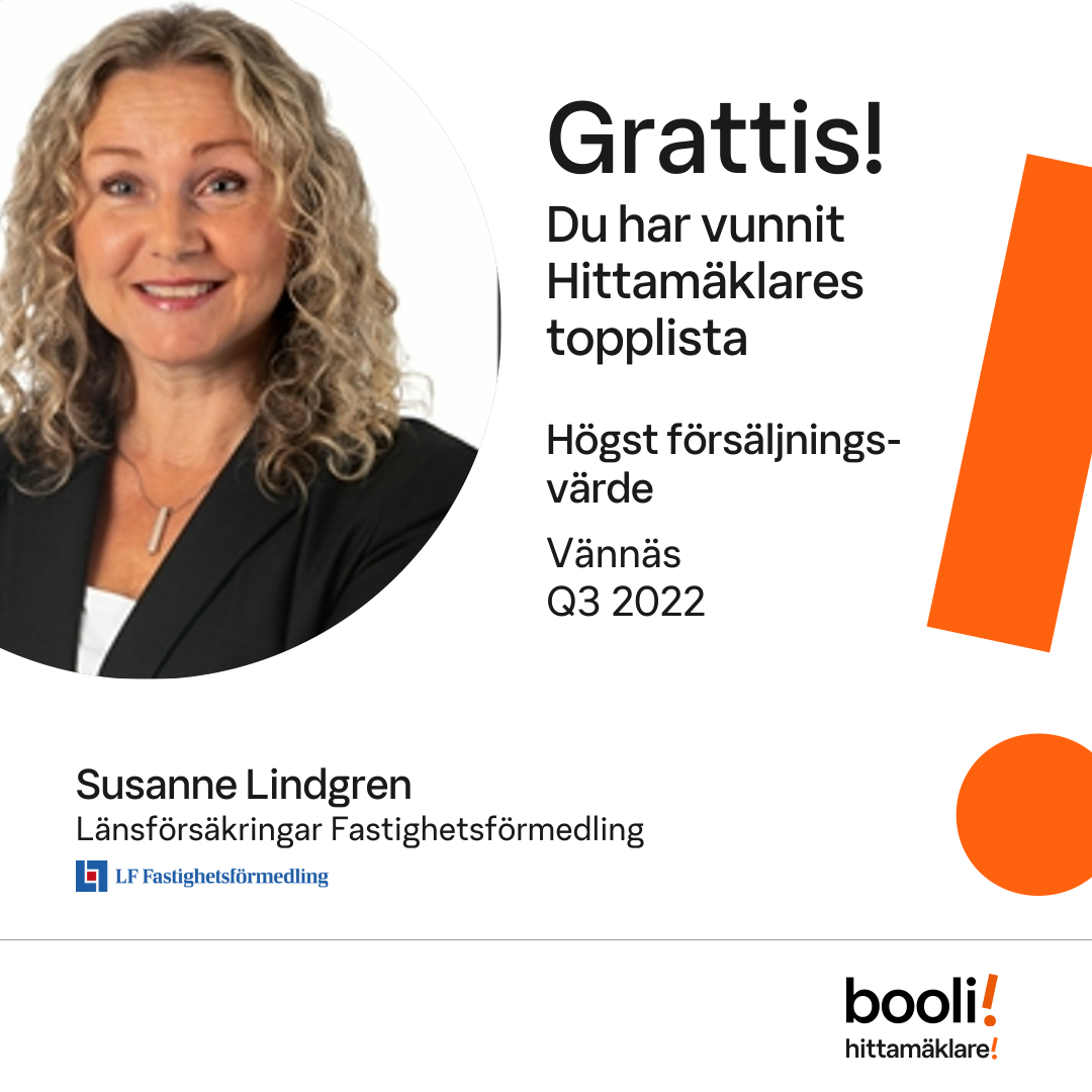 Statistik för publicerade bostäder, försäljningar och omdömen baseras på data från Booli och Hittamäklare. Statistiken för försäljningar avser inrapporterade och verifierade slutpriser från mäklare eller av Booli inhämtade och verifierade slutpriser. Statistiken för publicerade bostäder baseras på information som publicerats på Booli.se. Statistik för omdömen och rekommendationer baseras på omdömen från säljare som lämnats via Booli och Hittamäklare.
