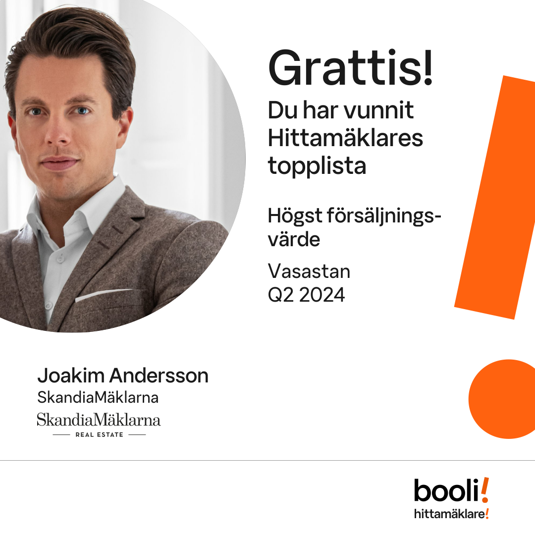 Statistik för publicerade bostäder, försäljningar och omdömen baseras på data från Booli och Hittamäklare. Statistiken för försäljningar avser inrapporterade och verifierade slutpriser från mäklare eller av Booli inhämtade och verifierade slutpriser. Statistiken för publicerade bostäder baseras på information som publicerats på Booli.se. Statistik för omdömen och rekommendationer baseras på omdömen från säljare som lämnats via Booli och Hittamäklare.
