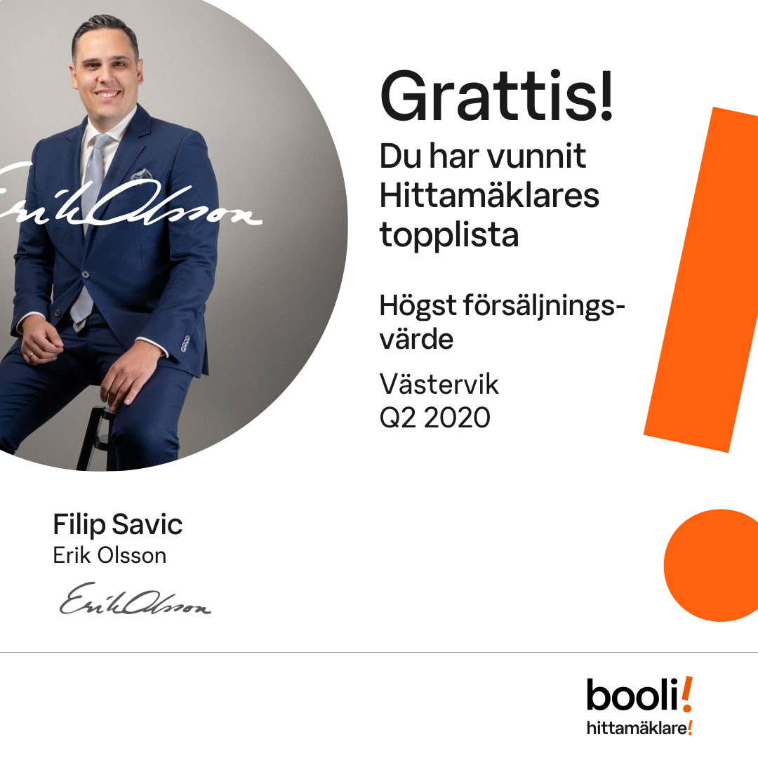 Statistik för publicerade bostäder, försäljningar och omdömen baseras på data från Booli och Hittamäklare. Statistiken för försäljningar avser inrapporterade och verifierade slutpriser från mäklare eller av Booli inhämtade och verifierade slutpriser. Statistiken för publicerade bostäder baseras på information som publicerats på Booli.se. Statistik för omdömen och rekommendationer baseras på omdömen från säljare som lämnats via Booli och Hittamäklare.