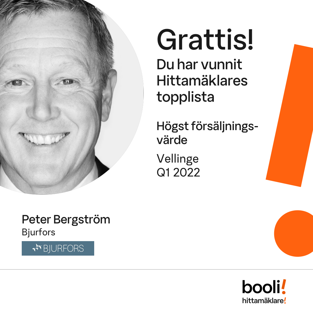 Statistik för publicerade bostäder, försäljningar och omdömen baseras på data från Booli och Hittamäklare. Statistiken för försäljningar avser inrapporterade och verifierade slutpriser från mäklare eller av Booli inhämtade och verifierade slutpriser. Statistiken för publicerade bostäder baseras på information som publicerats på Booli.se. Statistik för omdömen och rekommendationer baseras på omdömen från säljare som lämnats via Booli och Hittamäklare.