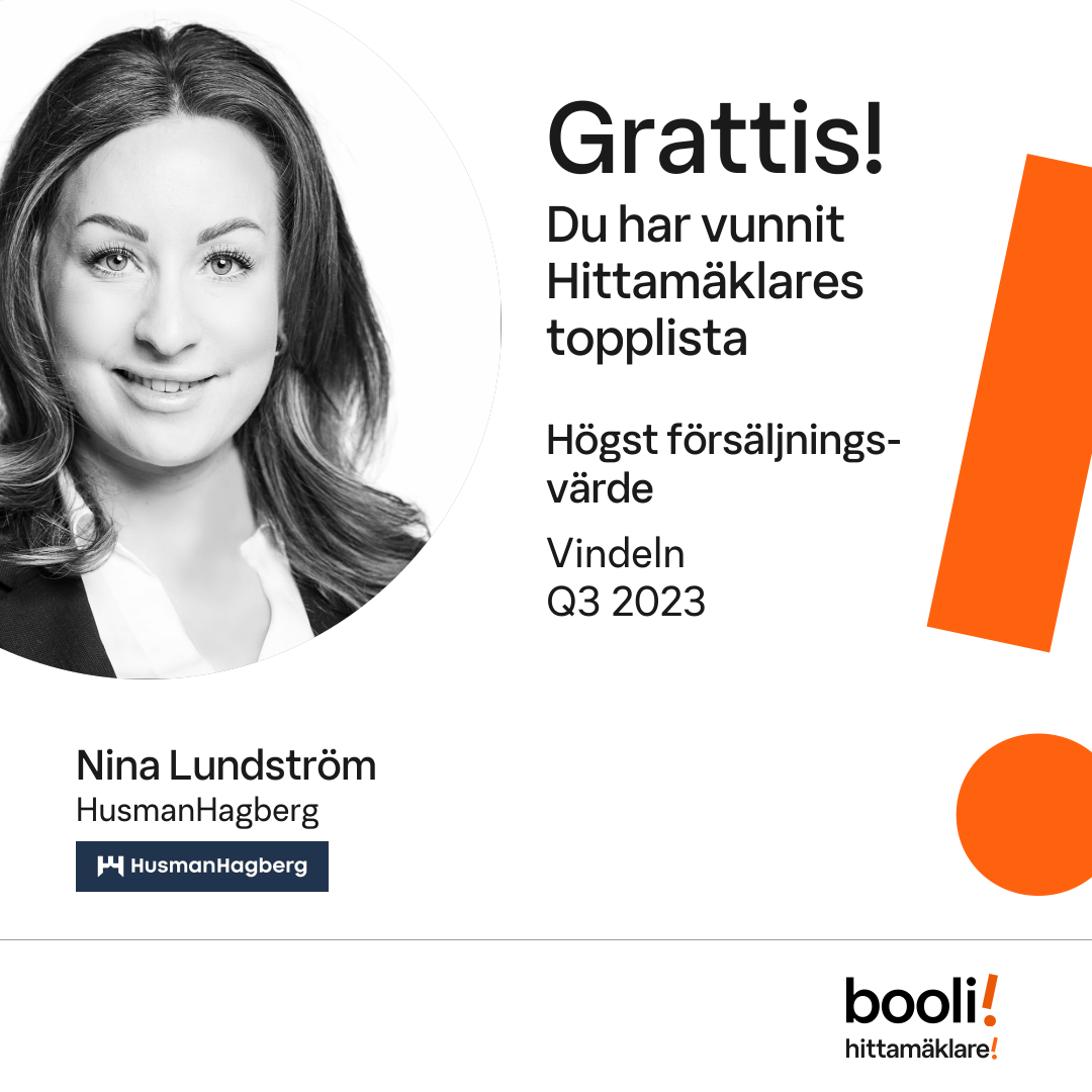 Statistik för publicerade bostäder, försäljningar och omdömen baseras på data från Booli och Hittamäklare. Statistiken för försäljningar avser inrapporterade och verifierade slutpriser från mäklare eller av Booli inhämtade och verifierade slutpriser. Statistiken för publicerade bostäder baseras på information som publicerats på Booli.se. Statistik för omdömen och rekommendationer baseras på omdömen från säljare som lämnats via Booli och Hittamäklare.