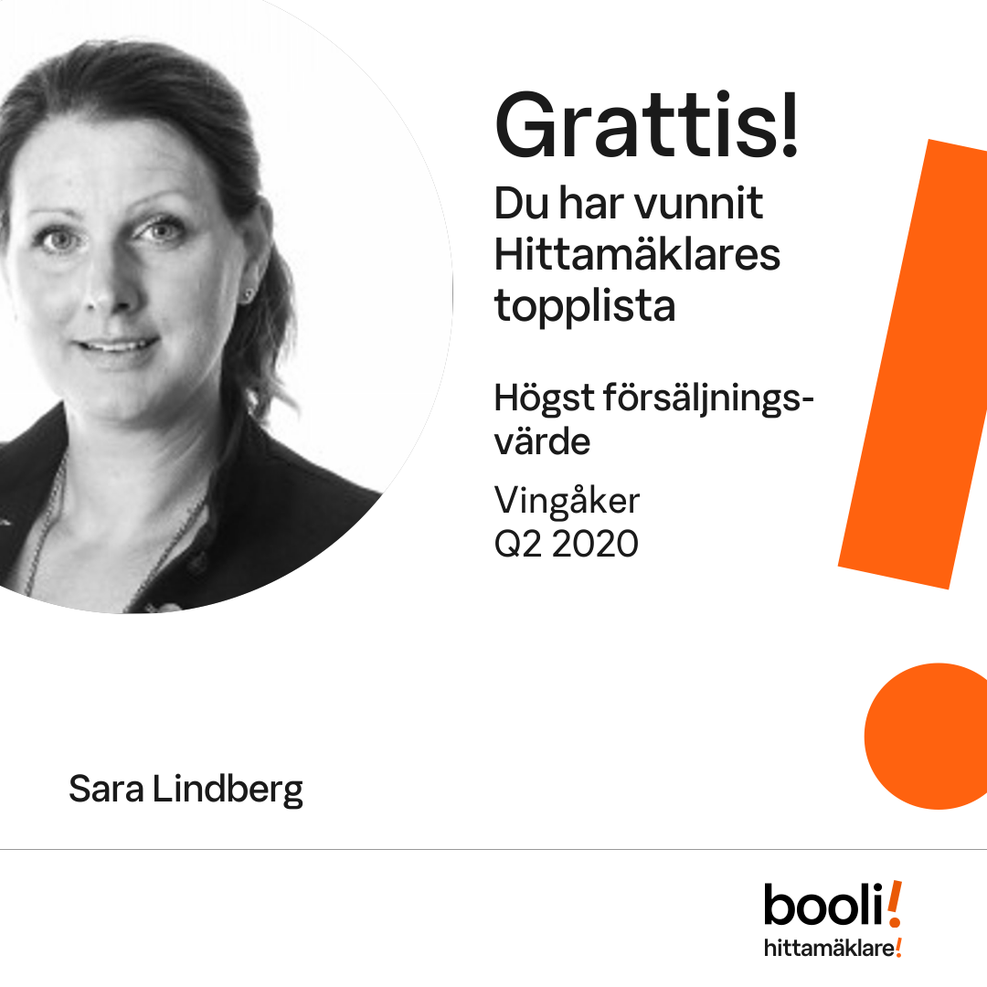 Statistik för publicerade bostäder, försäljningar och omdömen baseras på data från Booli och Hittamäklare. Statistiken för försäljningar avser inrapporterade och verifierade slutpriser från mäklare eller av Booli inhämtade och verifierade slutpriser. Statistiken för publicerade bostäder baseras på information som publicerats på Booli.se. Statistik för omdömen och rekommendationer baseras på omdömen från säljare som lämnats via Booli och Hittamäklare.